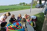 Nach langer (Corona-) Zeit hat das Team Kunterbunt eine Aktion unter freiem Himmel stattfinden lassen. Alle Kinder waren an einem Samstag mit Eltern, Großeltern, Geschwisterkindern, Verwandten und Bekannten eingeladen, viele Stationen der Erzieherinnen im Dorf zu besuchen und Aufgaben zu lösen. Schatzsuche im Bällebad, Fahrzeug-Rennen, Team-Memory, Picknick und vieles mehr waren Bestandteil des Riesen-Spaziergangs. In vier Gruppen machten sich alle angemeldeteten Familien auf den Weg und kehrten am Ende zur Siegerehrung zurück auf das Kitagelände. Ein ereignisreicher, spannender und außergewöhnlicher Kita-Tag wird allen Beteiligten noch lange positiv in Erinnerung bleiben, nicht zuletzt durch eine "Kunterbunt-Medaille".
