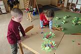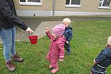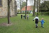 Am Gründonnerstag machten sich alle vier Gruppen des Familienzentrums nach einem gemeinsamen Osterfrühstück auf den Weg, erste Spuren des Osterhasen zu entdecken. Auf unserem Außengelände, rund um die angrenzende Kirche und auf einem nahegelegenen Spielplatz, hatte der Osterhase bereits Schokoladeneier verloren, die unsere Kindergartenkinder mit Freude fanden und intensiv suchten. Nach diesem spannenden Ausflug stellten die Kinder fest, dass in der Zwischenzeit der Osterhase im Kindergarten gewesen sein muss. Denn plötzlich waren alle im Vorfeld gebastelten Osterkörbchen gefüllt zurück in den Kindergartengruppen. Neugierig untersuchten die Kinder ihre Osternester und fanden darin weitere Schokoeier, ein Kreide-Ei und einen Mini-Gutschein der Bäckerei Niermann für ein Milchbrötchen. Tolle Ideen hatten da wohl Hase, Erzieher, wie Kinder!